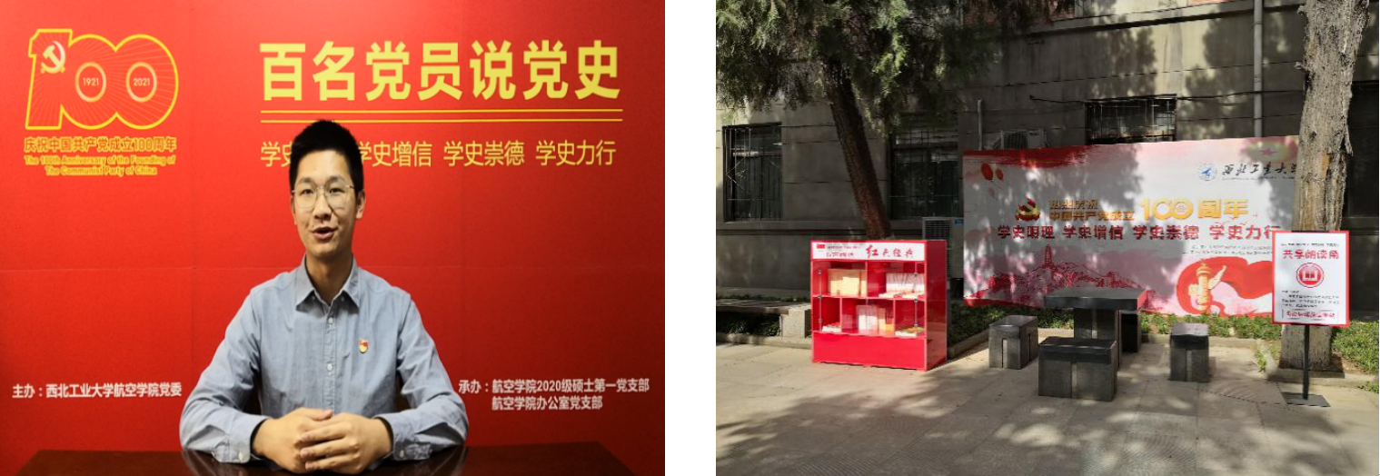 1.“五个维度”让党员教育“鲜活起来”。从“观、听、读、行、讲”等维度,高标准高质量开展学习教育。观:开展“百年百图”学生摄影展,作为学校“百幅工大今夕照片展”的一个系列进行展出,征集作品在工大摄影学会微博上每日推送,点击量超过万人。听:开展“师生共话党史,矢志航空报国”主题座谈会,聆听5名退休老同志分享工大党史故事;邀请学校大学生宣讲团给学生党员进行理论宣讲。读:坚持“四学”和“四结合”,为每名党员配发党史书籍,设立党史学习教育共享朗读角。行:开展“学党史、传承红色基因、争做时代新人”等主题红色实地研学活动,先后赴西安市区、阎良、蓝田、照金、渭南等地开展红色现场教学27次,覆盖学生超过千人。讲:开展“百名党员讲百史”微视频活动,组织100名学院师生讲述党史故事。