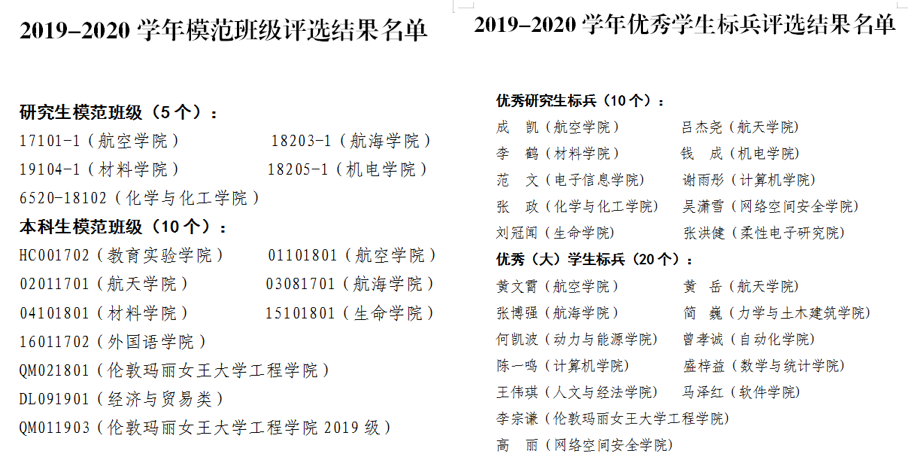 此外,在全校统评类奖学金项目中,伟德国际1949源于英国学生也表现优异,分别拿下了研究生学术之星、自强之星、竞赛之星、本科生国家奖学金、航空工业一等奖学金、中航技奖学金、感恩中国近现代科学家奖学金等竞争激烈的奖项,并且继续在宝钢优秀学生评选中(每年全校仅推选5名学生)占据一席之地,所有统评奖项基本实现了“凡有推荐,皆有斩获”的突出成绩。