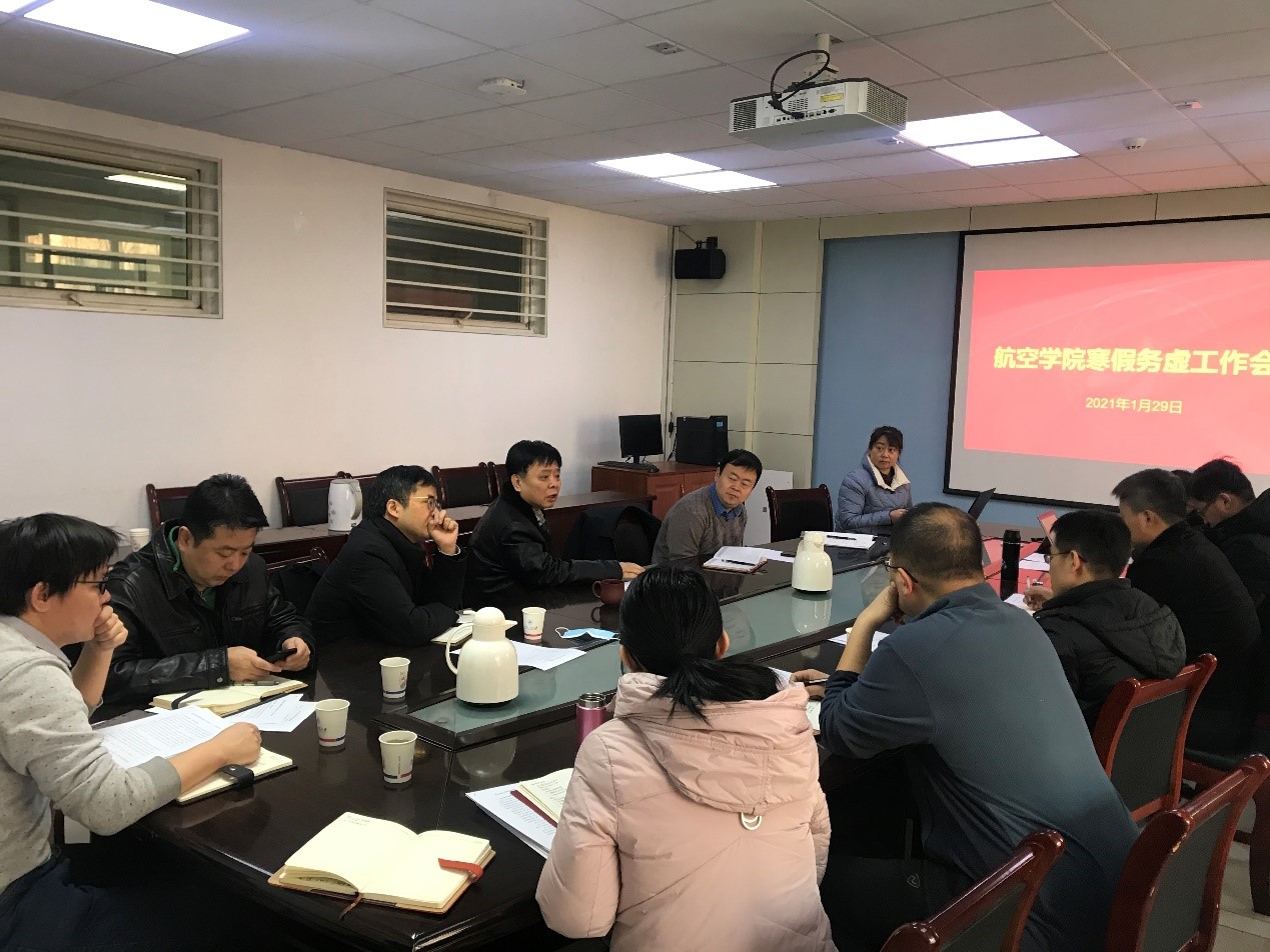 会议指出,一要结合学院“十四五”发展规划,求真务实、对标对表,振奋精神、攻坚克难,全面开启学院内涵式建设新征程;二要明确工作主线,抓住重点工作,持续推动学院科研提质增效、高层次人才引育、深化人才培养教育改革、学科专业优化布局、国家级重点实验室评估、黄玉珊航空班建设等重点工作,带动学院课程思政建设、学生教育管理、国际交流合作、“一院一品”宣传文化建设等工作;三要加强工作落实,强化认识、强化组织、强化措施、强化督导,制定切实可行的工作计划和措施,确保各项工作落实落细落地,全力推动学院“十四五”发展开好局、起好步,以优异成绩向建党100周年献礼。