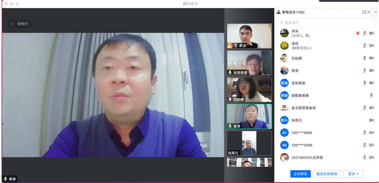 2021年12月31日晚,黄玉珊航空班组织召开在线跨年座谈会暨线上联欢会,邓子辰院长、索涛书记、李斌副院长、万方义副院长、20届班主任徐绯老师、21届班主任李冰老师、副班主任白赵娜老师以及两届黄玉珊航空班的全体同学、家长共126人出席了本次座谈会,会议由李冰主持。