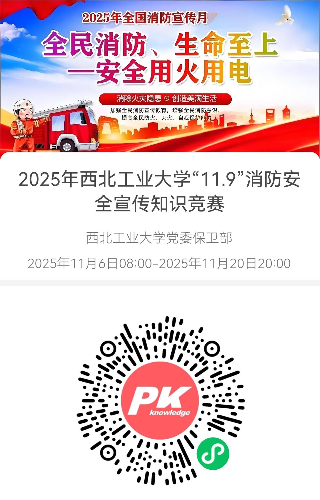 2025年11月9日是第34个全国消防日,国务院安委会办公室、国家消防救援局定于11月份在全国开展消防宣传月活动,主题是“全民消防、生命至上——安全用火用电”。为进一步提升广大师生消防安全意识,提高应急处置能力,特开展2025年伟德国际1949手机版“11.9”消防安全宣传知识竞赛,现将相关事项通知如下: