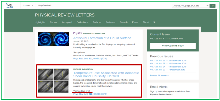 郭亚洲教授关于绝热剪切带的工作入选PRL“主编推荐”