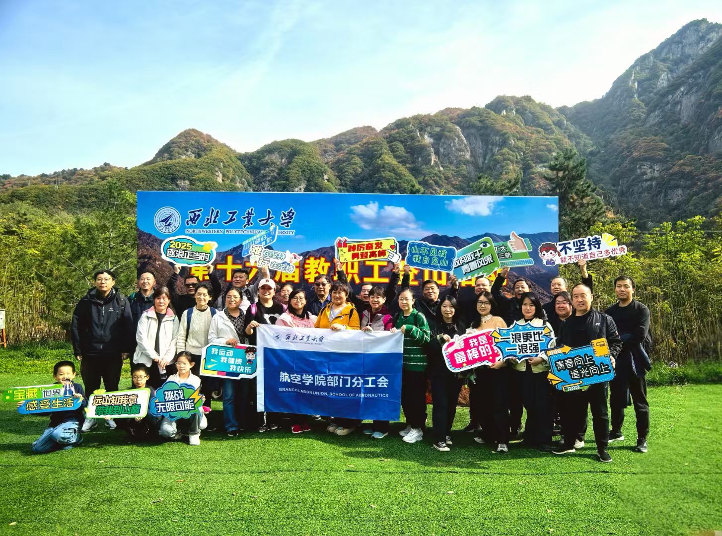 登山途中,奇峰罗列,碧水潺潺,独特的山崩地貌与斑斓的秋叶交织成一幅动人的画卷,教职工们沿着山径拾级而上,畅叙情谊,交流心得。沿途相互鼓励与帮助的场景,充分展现了学院团结友爱、积极向上的良好氛围。此次活动不仅锻炼了体魄、舒缓了压力,更极大地增强了团队的凝聚力与向心力。大家纷纷表示,将以更饱满的热情投身于立德树人与科研创新工作,为学校与学院的发展贡献“航空人”的力量。
