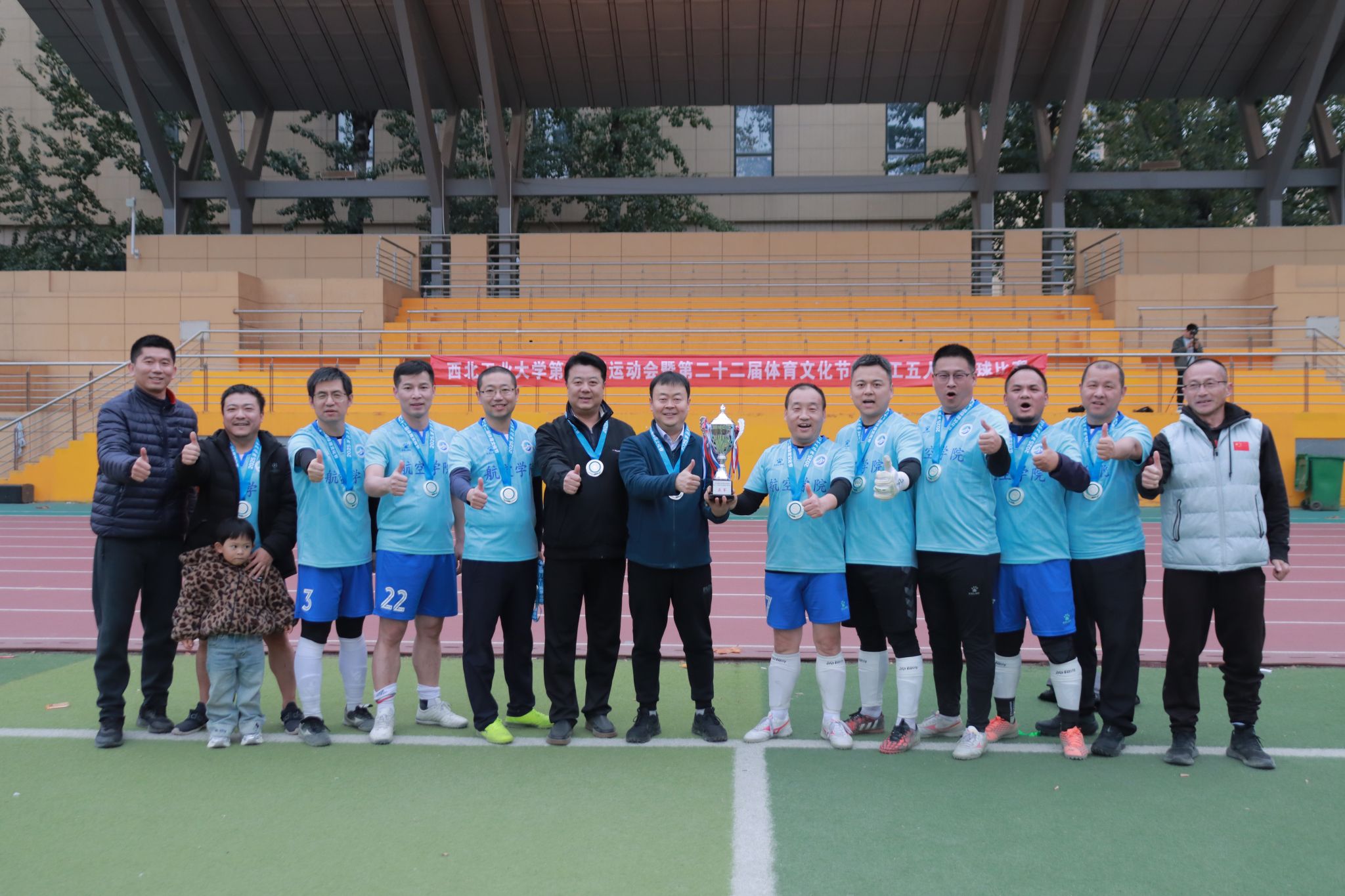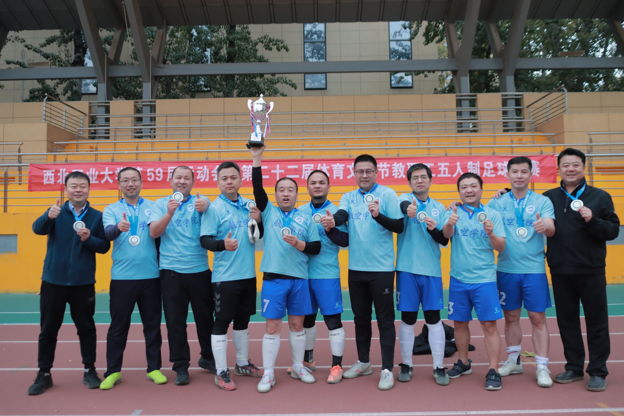11月9日至16日,西工大第59届运动会暨第二十二届体育文化节教职工五人制足球比赛,在友谊校区足球场举行。伟德国际1949源于英国坚持倡导“快乐工作,健康生活”,广泛动员足球爱好者参加,积极做好备赛参赛工作。