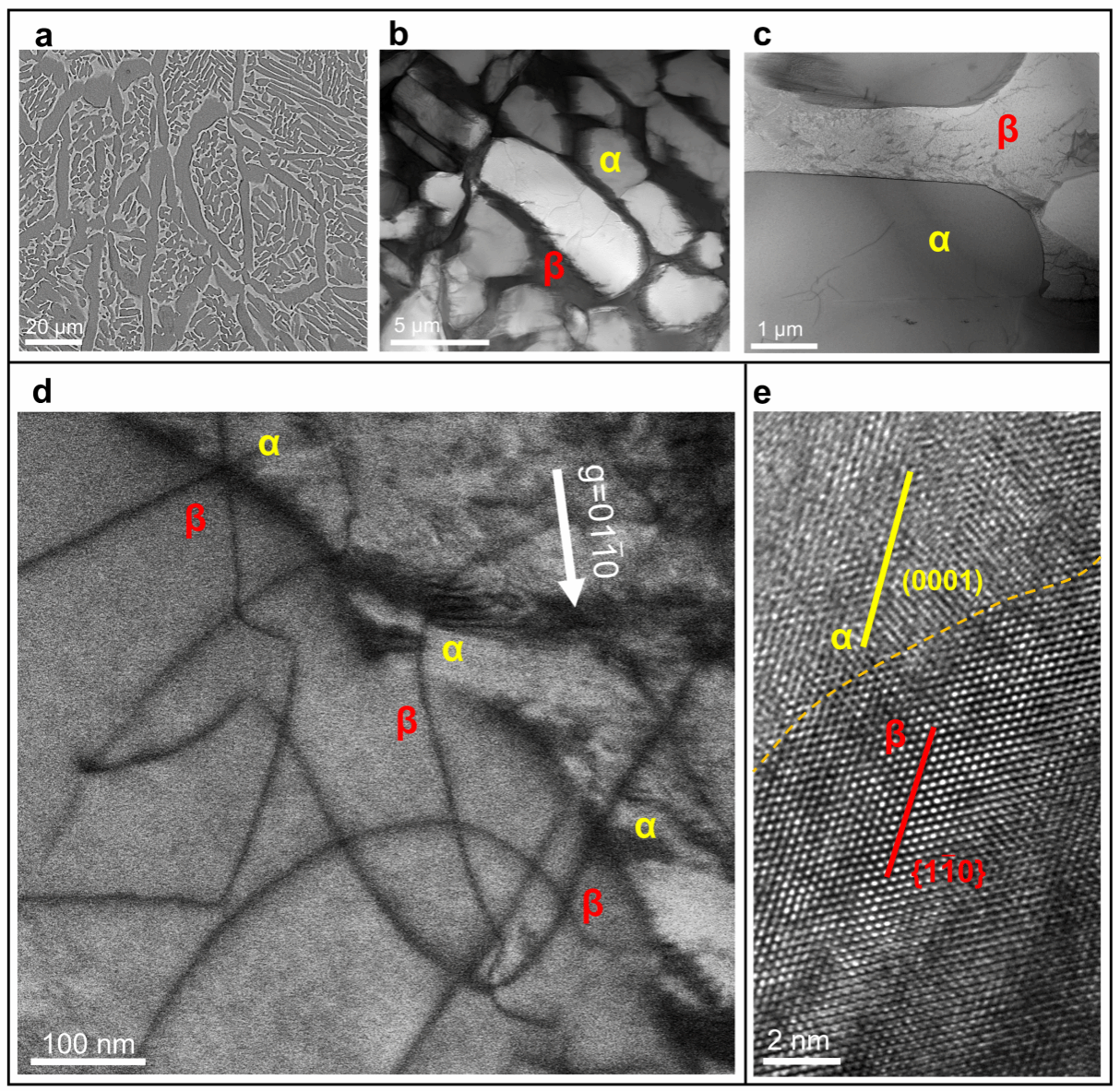 研究团队创新性提出“成分调控 + 微观结构工程”双策略,通过将氧含量提升至0.40%以上,成功激活α相中的锥面<c+a>滑移系,为塑性变形提供关键路径;同时借助 Ti-O-Fe 合金设计、激光粉末床熔融增材制造与退火处理,构建出具有相干界面的α-β层状微观结构,实现位错在相界间的持续传递。