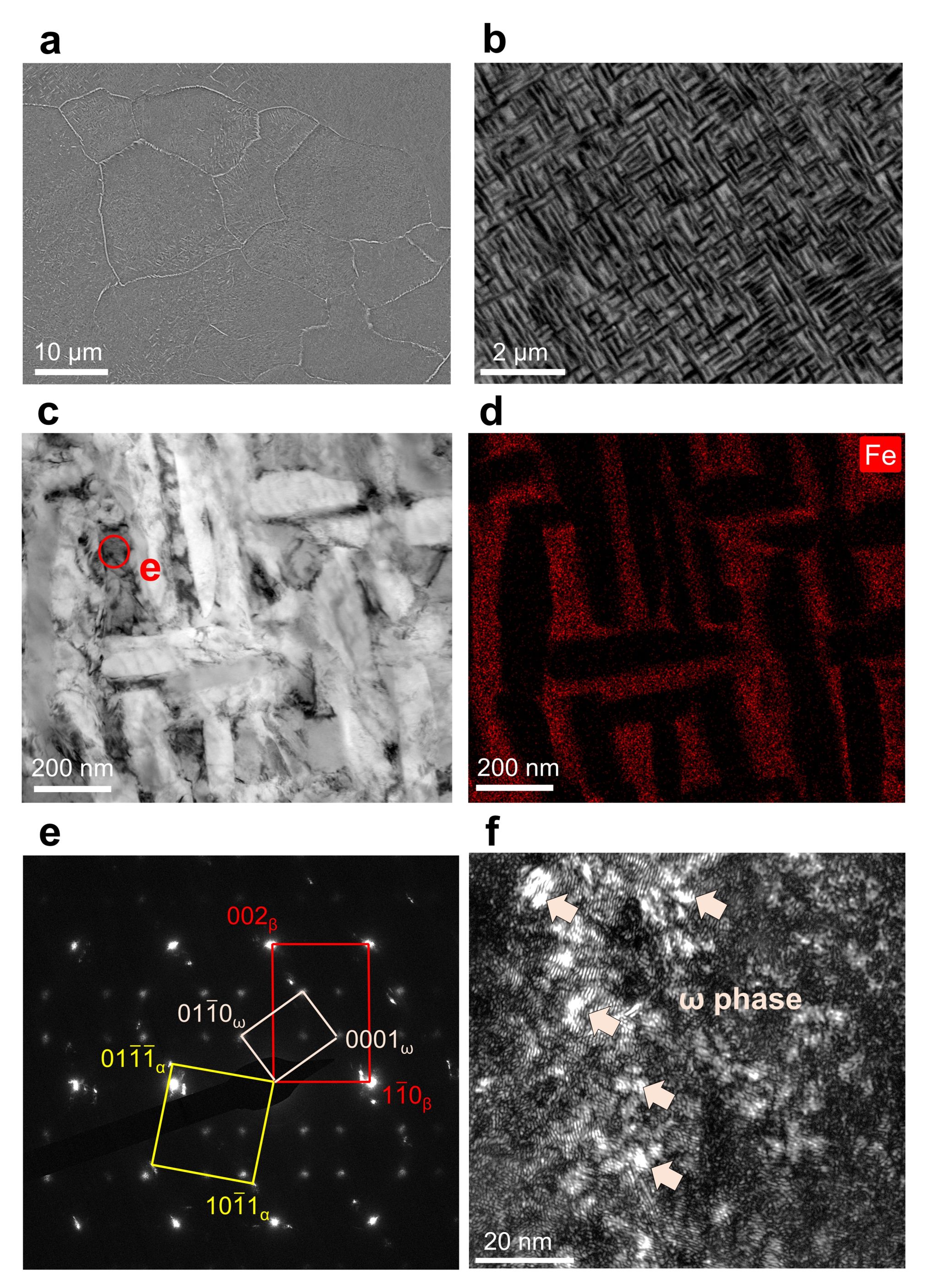 图3. 经PBF-LB制备及800 °C退火1小时后的Ti-0.45O-4Fe合金显微组织。