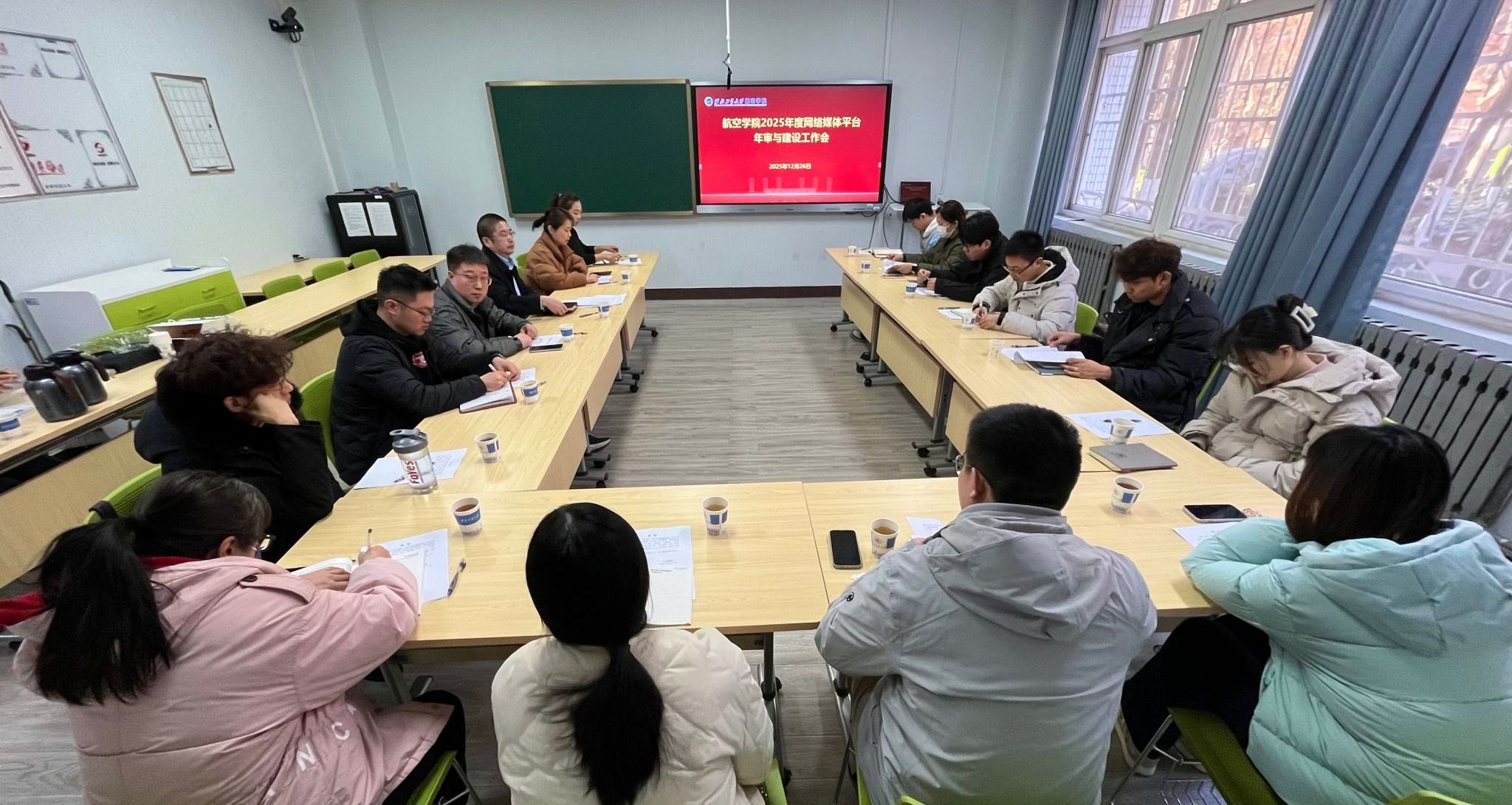 会上,赵超首先强调了体网络平台年审与建设的重要性,从发文数量、粉丝数、存在的问题等方面全面介绍了学院网络媒体平台的整体运营情况。随后,刘建平组织全体与会人员集中学习新闻宣传相关文件,明确宣传工作规范与要求。座谈交流环节中,大家围绕平台运营过程中遇到的实际问题展开深入探讨,分享经验做法,凝聚改进共识。