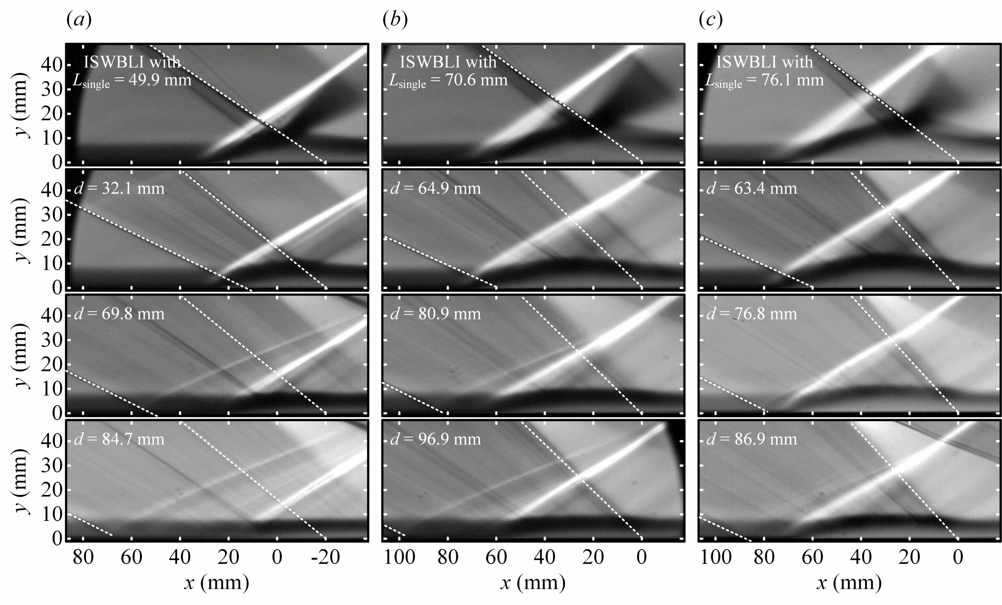 图1 压缩波系覆盖范围会影响干扰流动分离尺度
