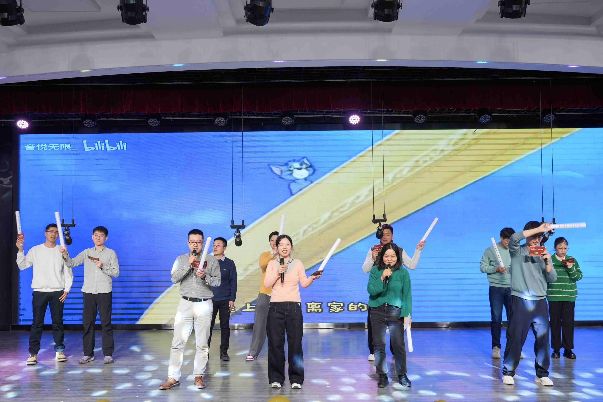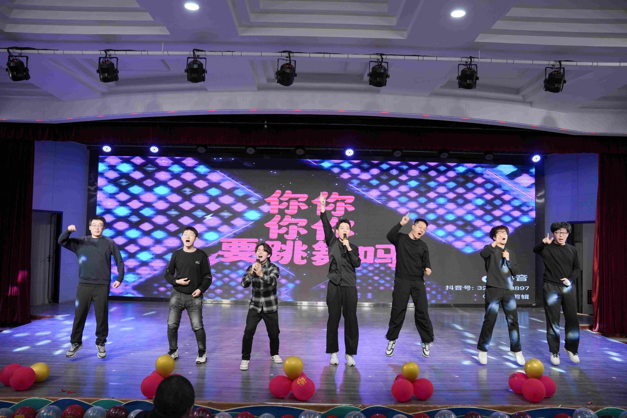 院办全体人员带来歌舞表演《翼起向前,万事顺意》,活泼的舞步与改编的歌词,彰显了他们服务师生、支撑学院“驭风而上”的坚定决心与团结氛围。
