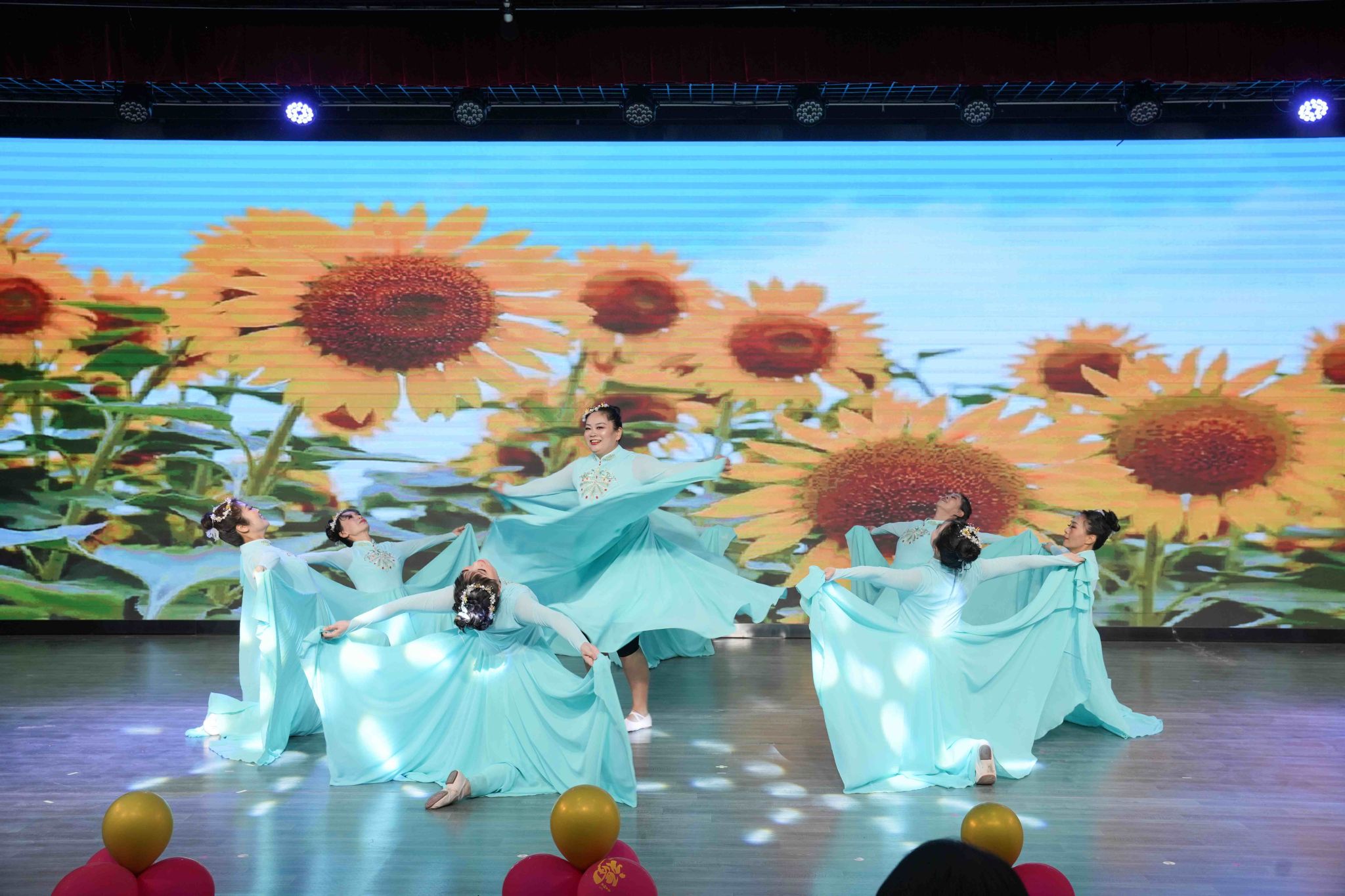 邓琼、郭琦、宋文静等老师再次登台,献上舞蹈《一生向阳》,以优美的舞姿诠释航空人心怀理想、一生追随光明、矢志不渝的追求。