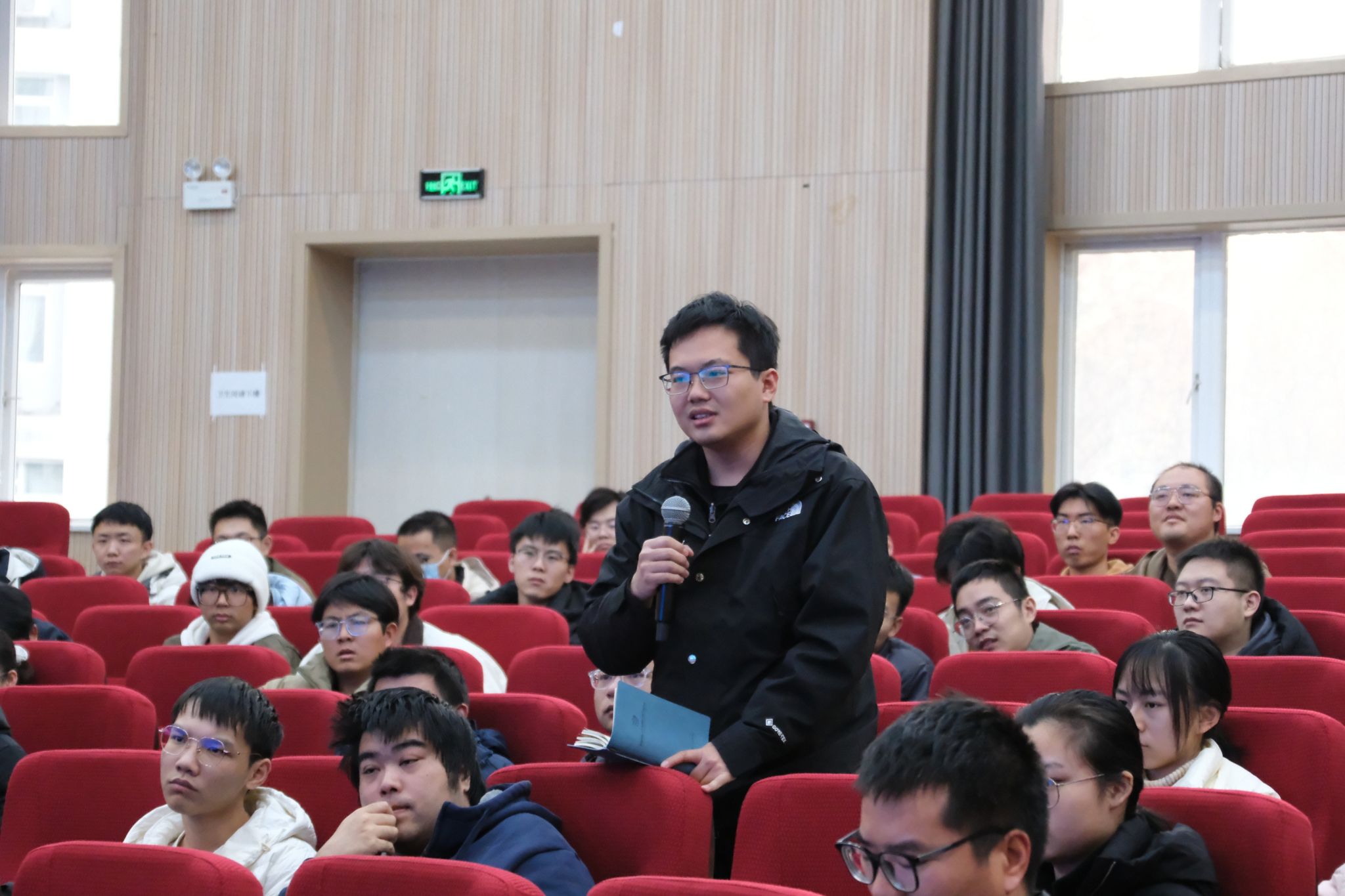 在互动环节中,同学们围绕AG600的技术细节踊跃提问,包括截面积变化较大的机身如何实现舱内增压、抗浪设计需综合考虑哪些关键问题等。黄领才对此逐一作出细致解答,现场交流深入,气氛热烈。